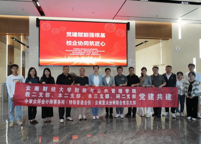 随后,财政与公共管理学院教工第二党支部、本科生第二党支部、本科生第三党支部及研究生第二党支部,与中审众环会计师事务所(特殊普通合伙)云南亚太分所联合党总支部共同开展党建共建活动。