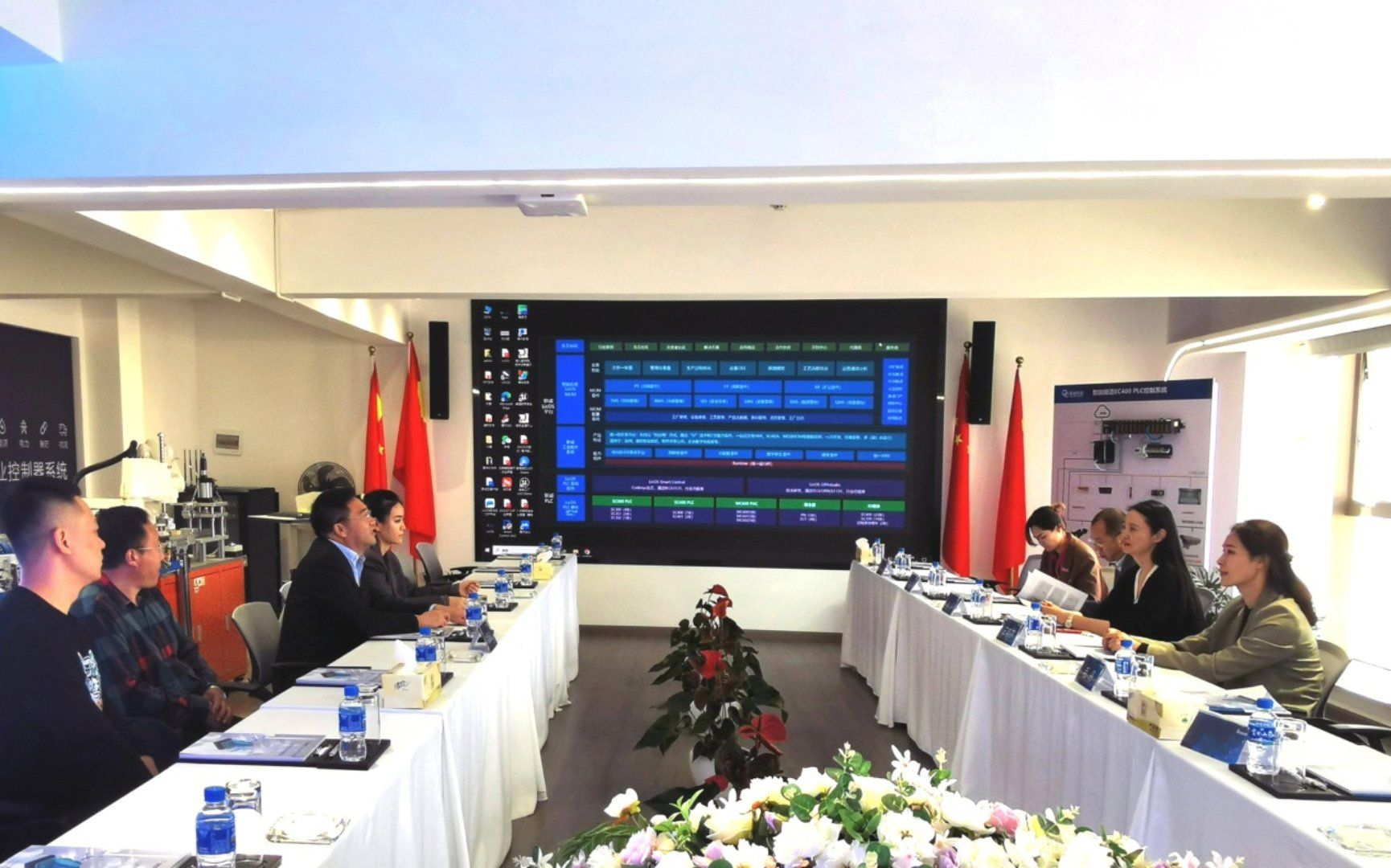 学校杰出校友、联诚科技集团股份有限公司党委书记、副董事长余新礼代表企业对母校一行人的到来表示热烈欢迎,他陪同大家实地参观了公司经营场所和企业技术产品展厅。在座谈会上,余新礼详细介绍了联诚科技的基本情况、业务板块、核心技术产品及当前企业的用人需求,深入交流行业发展态势。他表示,联诚科技将积极探索校企合作模式,助力学校毕业生就业工作。