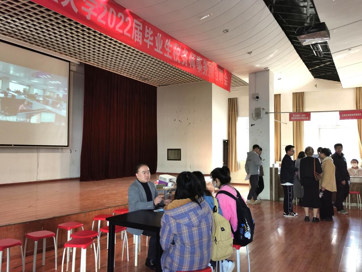 本次招聘会由云南省注册税务师协会、云南省注册税务师行业党委,与bat365官网财政与公共管理学院、会计学院及经济学院联合主办。云南省注册税务师协会秘书长杨银波、副会长熊斌,财政与公共管理学院党委副书记王晓芬、会计学院党委副书记王涛到招聘会现场了解毕业生应聘情况,并与同学们进行深入交流。