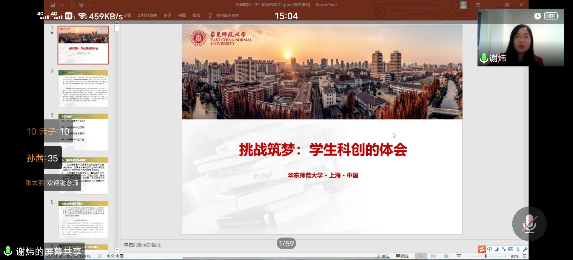 2021年1月4日,财政与公共管理学院通过”腾讯会议”在线上开展“挑战杯”课外学术科技作品竞赛专题指导讲座。本次讲座邀请到华东师范大学公共管理学院行政管理系副教授谢炜老师担任主讲,她以“挑战筑梦:学生科创的体会”为题进行了科创作品选题、写作及备赛经验的分享。讲座由财政与公共管理学院党委副书记王晓芬主持,学院180余名师生在线聆听了讲座。