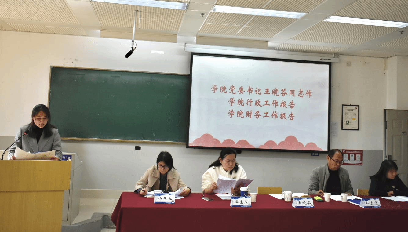 党委书记王晓芬代表学院作行政工作报告和财务报告,全面总结了学院2024年取得的成绩,科学规划2025年重点工作和发展目标,号召全体教职工齐心协力,奋力攻坚,共同开创学院发展新局面,为云财高质量发展贡献政管智慧和力量。