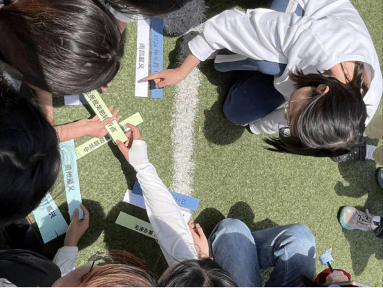 “党史荣耀,红色序列”故事拼凑比赛,要求各小组成员从各章写有时间、人物或事件的卡片中拼凑出正确的党史故事。在比赛中,学员们齐心协力,迅速地以百分百的正确率完成了此项比赛。