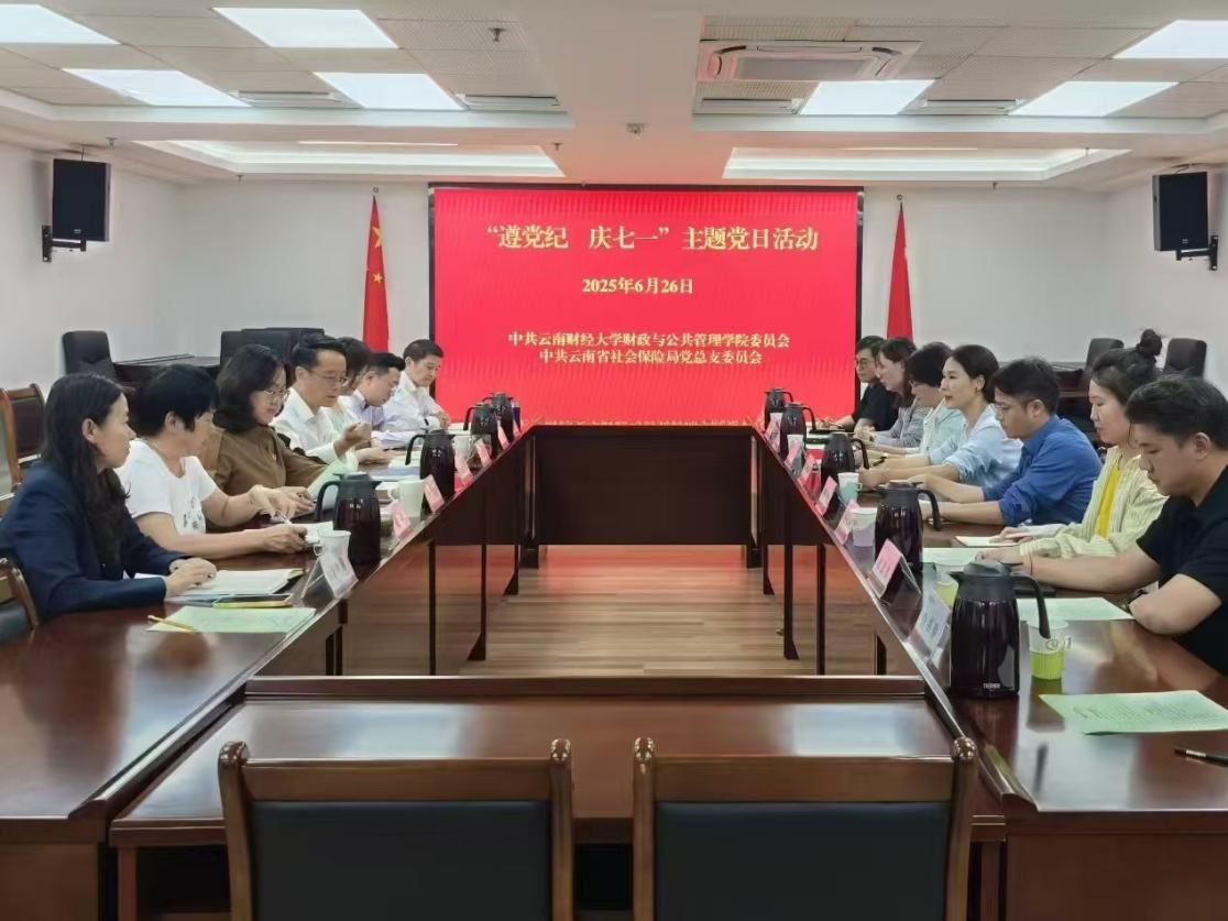 626日,财政与公共管理学院党委书记王晓芬带队前往云南省社会保险局开展联建共建活动。双方以“遵党纪 庆七一”为主题共同开展了主题党日活动。