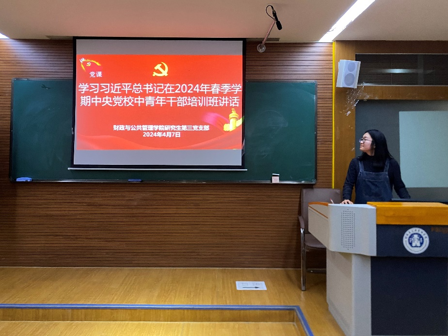 2024年4月7日晚上,财政与公共管理学院研究生第三党支部于逸夫楼706教室召开支部大会,支部大会由副书记王亚同志主持。
