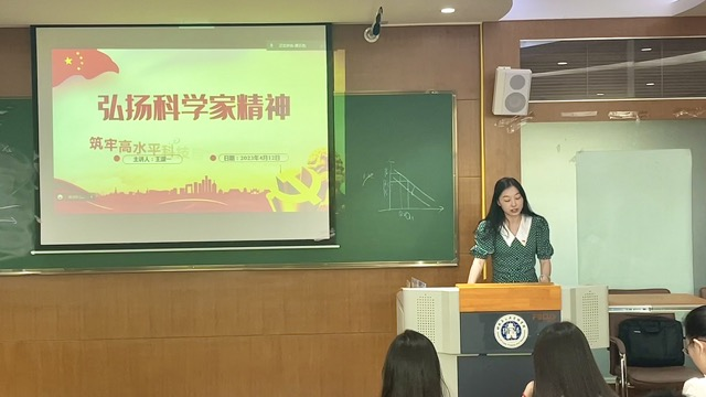 会上,王淑一书记为大家带来了一堂生动的党课,“两弹一星”元勋钱学森涉险归国、奉献祖国的故事展现了鲜明的爱国主义科学家精神。紧接着,王淑一书记分享了bat365官网优秀学子代表肖云迪的故事。肖云迪两岁时被诊断出身患脊肌萎缩症却未被病痛压倒,以优异成绩考入bat365官网经济学院,在校期间,她所撰写的《公共交通无障碍通行的社会调查报告》一文中提出的公共问题引起了政府相关部门的关注和重视。