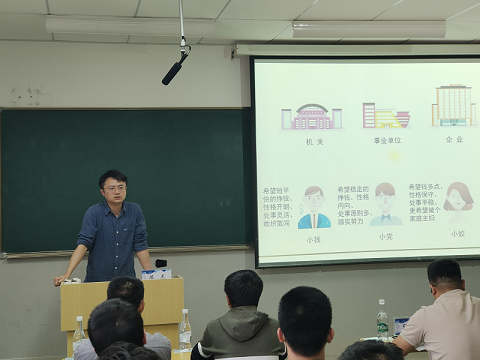 首先是财政与公共管理学院研究生导师陈龙老师分享了大学生就业选择与生涯发展的内容,从个人职业规划与就业岗位选择的角度强调了职业选择要“因人制宜”。现场解答了同学们关于公**、事业单位岗位选择等问题,进一步加深了大学毕业生对就业选择和生涯发展的认知。