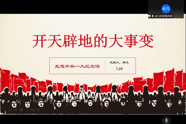 肖凡同志以“开天辟地的大事变——走进中共一大纪念馆”为主题,围绕“前仆后继,救亡图存”“民众觉醒,主义抉择”“早期组织,星火初燃”“开天辟地,日出东方”“砥砺前行,光辉历程”五个部分对中共一大纪念馆做了一个介绍,并谈了自己的心得体会;董洋同志以“长征精神——走进迪庆红军长征博物馆”为主题向大家介绍了迪庆红军长征博物馆,他主要分享了“心愿——一个藏族战士的恋歌”“乌蒙山回旋的传奇”“雅哈雪山树立的丰碑”三个主要板块,最后和大家一起重温了长征精神,希望每一个青年党员都能走好自己的长征路;王淑一同志以“重走红色路线:娄山关精神”为主题为大家对娄山关战役进行了一个介绍。随后再次领学了“习近平总书记‘七一’重要讲话精神”,希望广大党员能肩负历史使命,坚定前进信心。