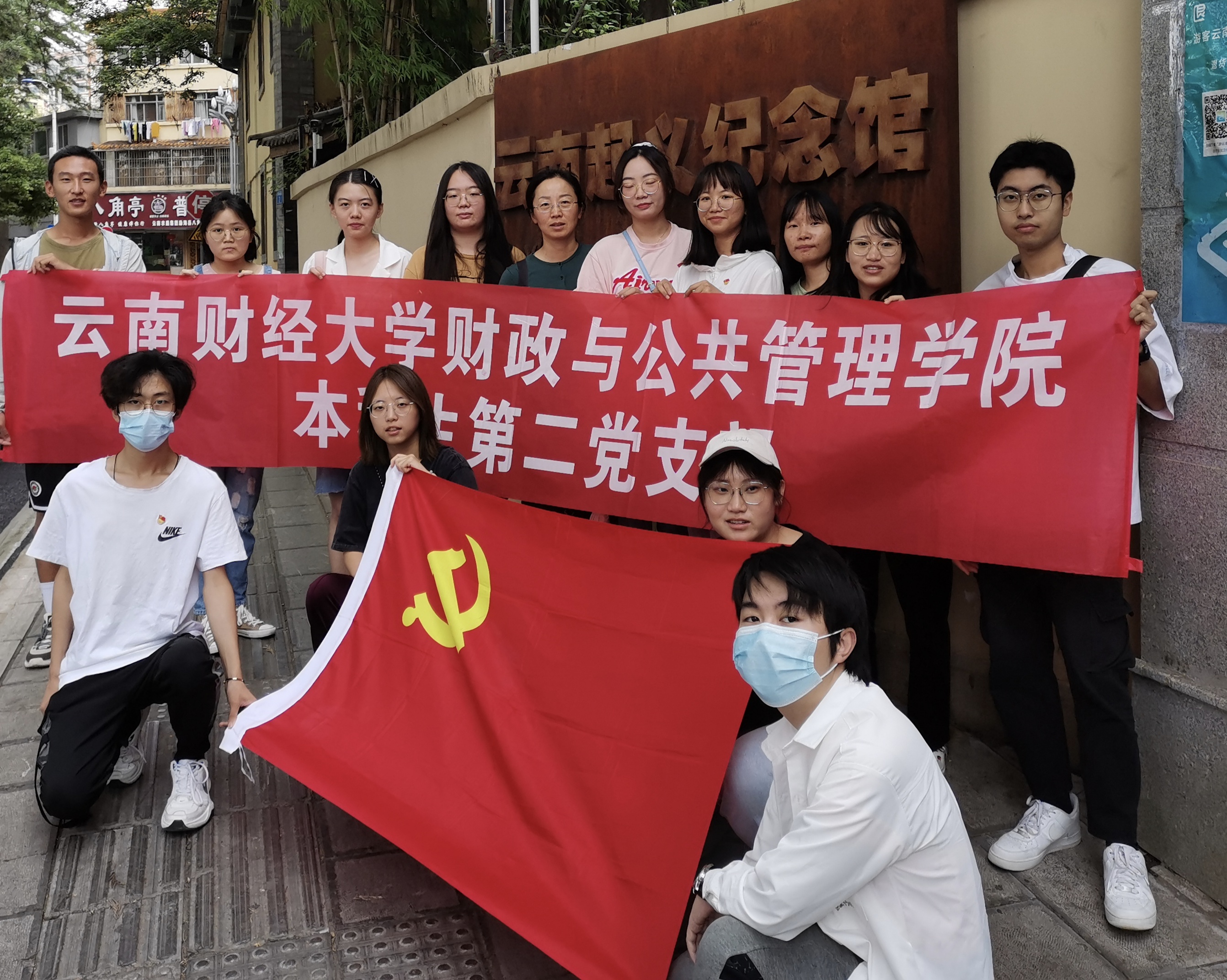 百年血雨腥风,奋斗砥砺前行。在中国共产党的带领下,经过百年的艰苦奋斗,中国正在向建设社会主义现代化国家阔步前进。2021年6月27日,在中国共产党迎来百年华诞的前夕,财政与公共管理学院本科生第二党支部党员同志,在袁芳书记的带领下,来到云南起义纪念馆进行参观学习体验活动。