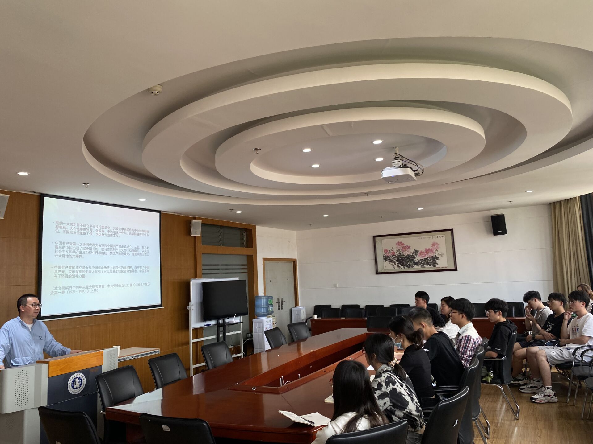 202164日下午三点,在南院逸夫楼923教室,财政与公共管理学院本科生第四党支部开展主题为“党史学习之历届党代会简介”的党史学习会议。此次党史学习由党委委员李永康老师主讲,李永康老师就中国共产党成立以来召开的十九次全国代表大会的相关内容给与会党员展开了详细的讲解。