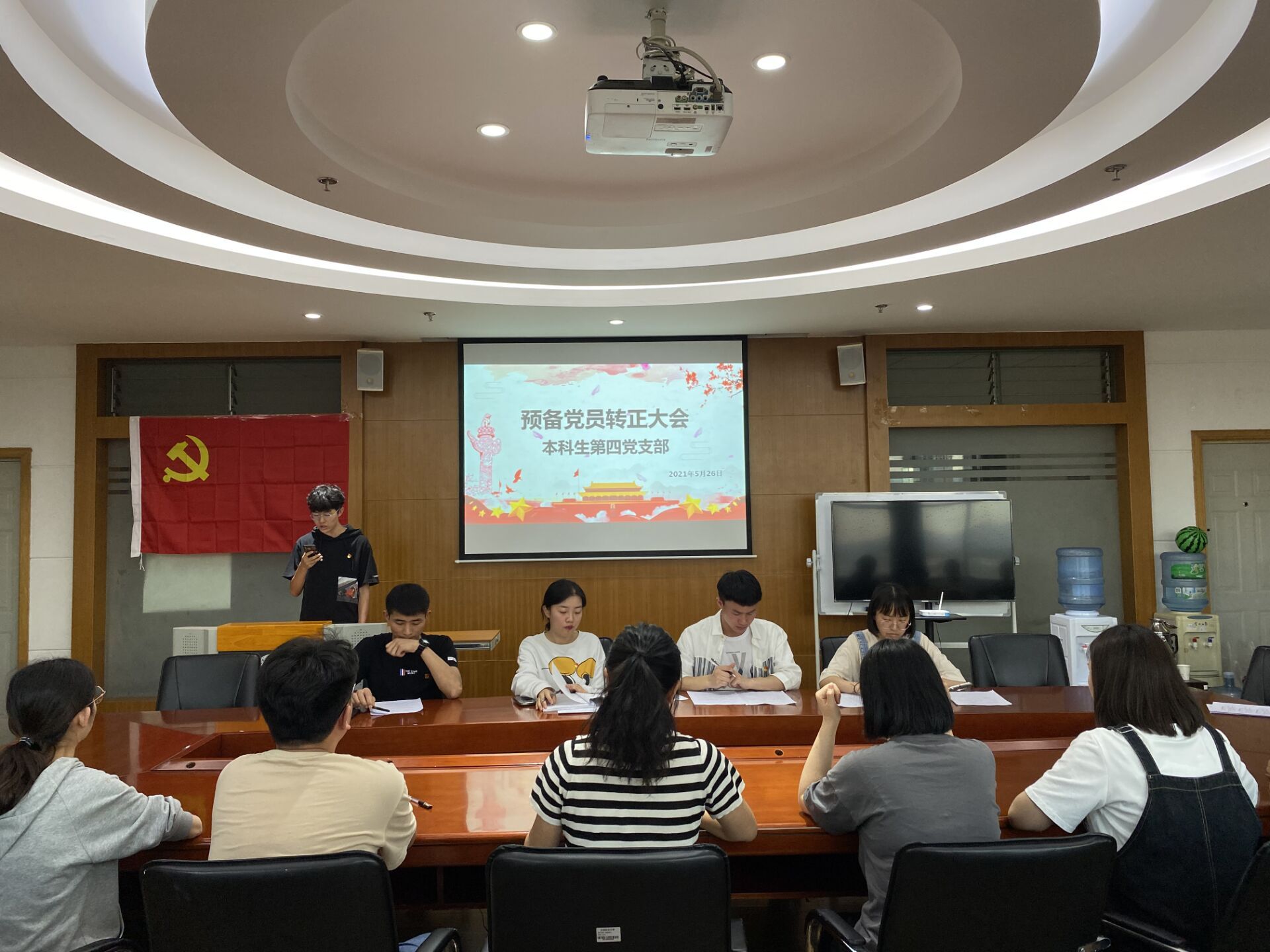 2021526日,本科生第四党支部在逸夫楼923召开预备党员转正大会,本次会议应到正式党员9名,实到正式党员9名,实到正式党员人数超过应到会有表决权党员半数,符合会议流程。