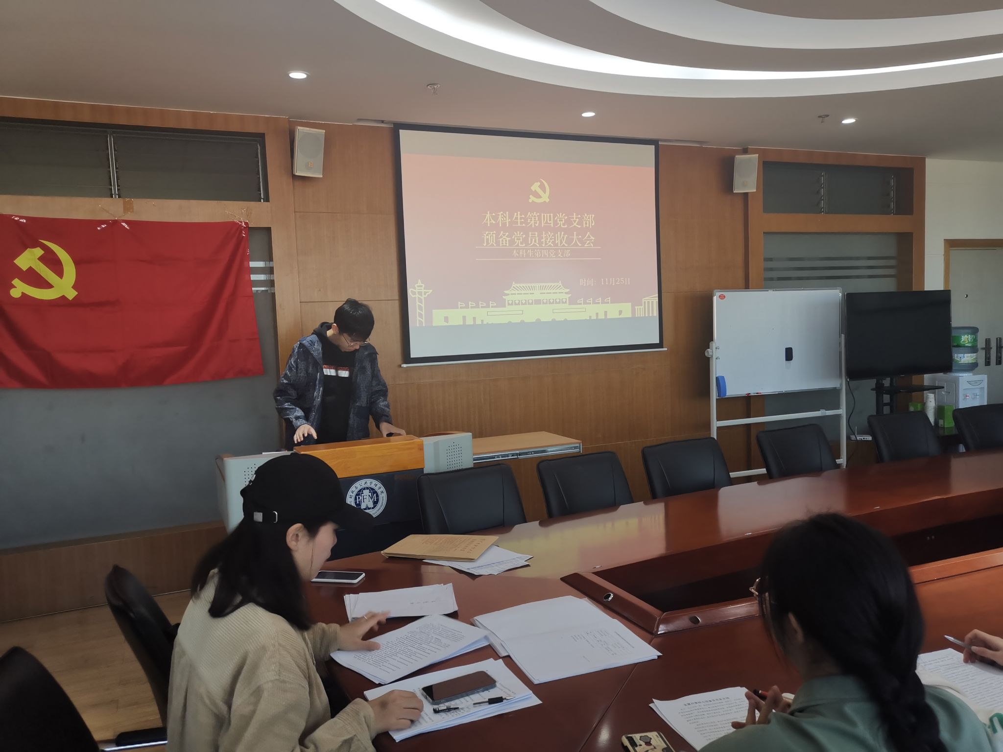 2020年11月25日本科生第四党支部在逸夫楼923召开预备党员接收大会。本次会议由支部副书记陈智威主持。