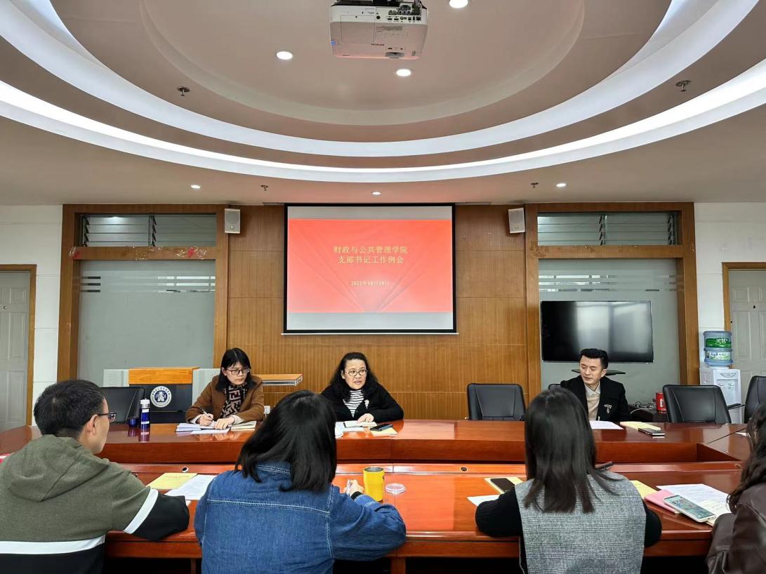 10月10日下午,财政与公共管理学院党委在逸夫楼923召开10月支部书记工作例会,学院党委书记荣小红、副处级组织员杨燕红及全体党支部书记参加了会议,会议由党委书记荣小红主持。
