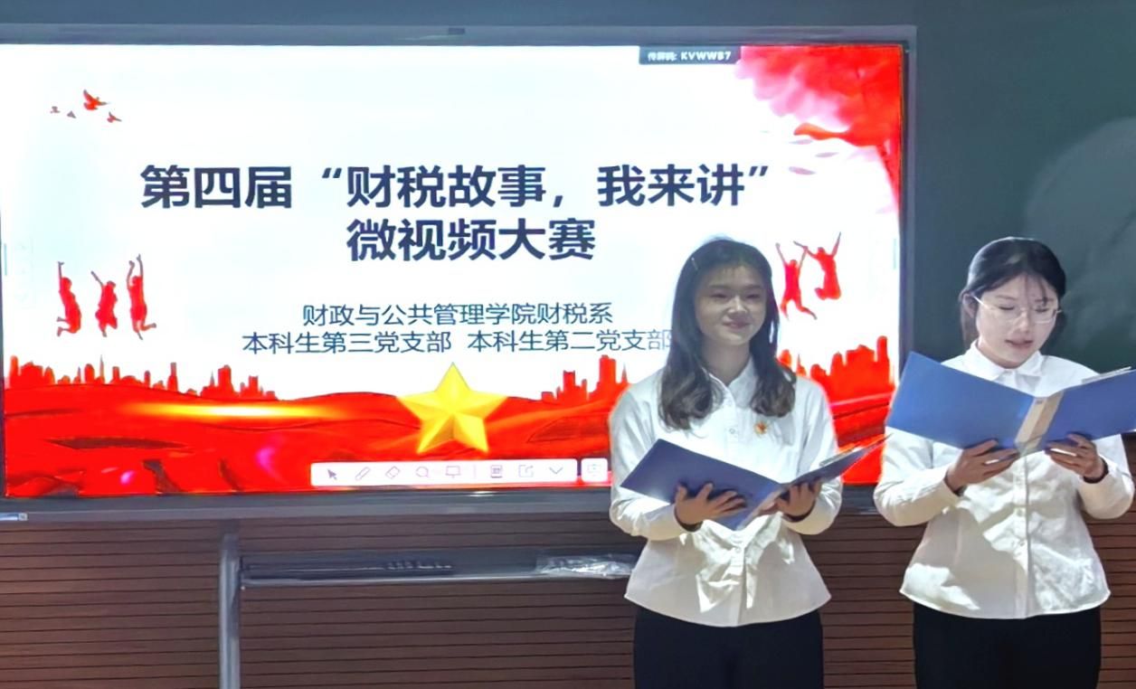 12月18日,财政与公共管理学院本科生第二、第三党支部在逸夫楼706教室联合举办第四届“财税故事,我来讲”微视频大赛。学院党委委员李树奇、教工第二党支部宣传委员索朗杰措、本科生第二、第三党支部书记李宁、杨德会担任评委,两个支部党员及入党积极分子参加本次活动。