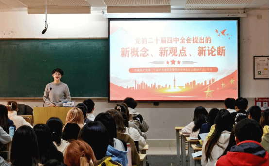 12 月 5 日,学院党委副书记李昀璟在逸夫楼 309 教室为本科生第三党支部、研究生第一党支部党员和入党积极分子讲授党的二十届四中全会精神专题党课。