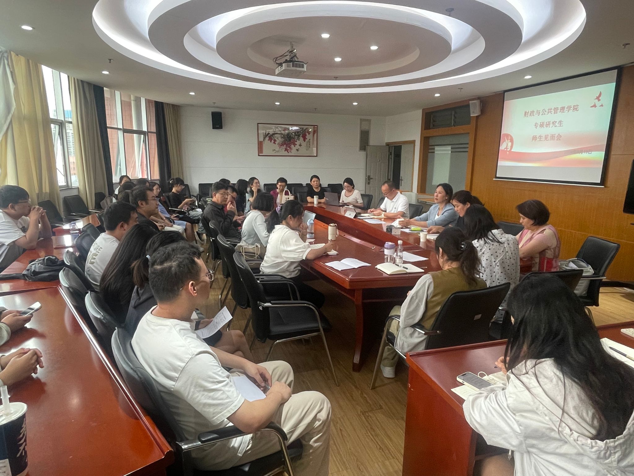 为深入了解专硕研究生在日常学习生活中遇到的困惑,了解学生想法,提高学院管理部门服务能力以及提升专业型硕士培养水平,6月19日,财政与公共管理学院举办专硕研究生师生见面会。院长缪小林、党委副书记王晓芬、副院长和立道、副院长李重照,MPA中心各位老师、专硕班主任、导师代表及任课老师代表与MPA、MT各年级各班研究生20余名代表进行面对面座谈交流。