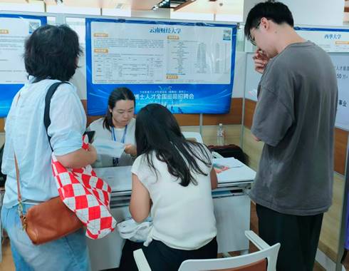 活动现场,bat365在线中国官网登录入口招聘展位吸引西安交通大学、四川大学、四川农业大学、西南交通大学、西南财经大学、西南民族大学、成都理工大学、重庆大学、西南大学等知名院校的优秀博士生参加面谈,并现场投递简历,加入拟引进博士交流微信群。学校人才引进工作小组主动发放人才宣传手册,与广大优秀博士进行了面对面的深入交流,积极宣传云南省“兴滇英才支持计划”各类人才专项政策及学校人才引进政策,并就应聘人员关心的招聘条件、人才待遇、职业发展、科研团队平台、教学科研考核情况等进行耐心细致解答,增强了他们应聘的意愿。
