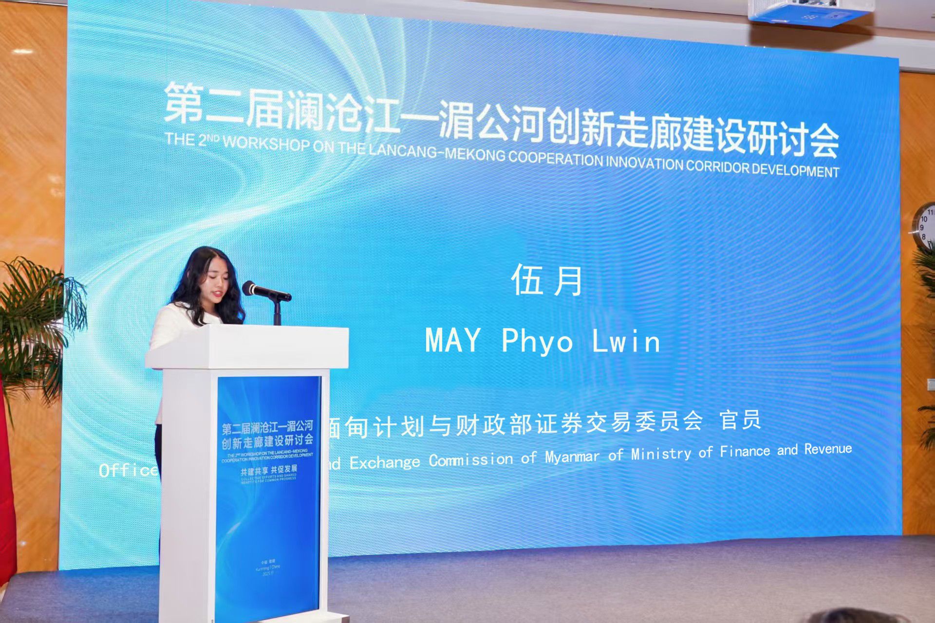 国际学生伍月是学校商务部学历学位教育项目的在读硕士研究生,入学前在缅甸证券交易委员会工作。她在主旨演讲中表示,澜沧江—湄公河创新走廊是通往绿色未来的重要桥梁,能够帮助地区国家跨越传统的资源密集型发展模式,她提出建立联合研发基金、绿色创新基金和技术试点项目三项具体建议。她还从政策实践角度提出了“三方协同”合作模式,建议通过政府机构、学术界和私营部门的协同努力,建立统一的绿色技术标准和知识产权保护规范,同时动员私人资本投资绿色债券和可持续金融机制,为成功的技术转移提供保障。