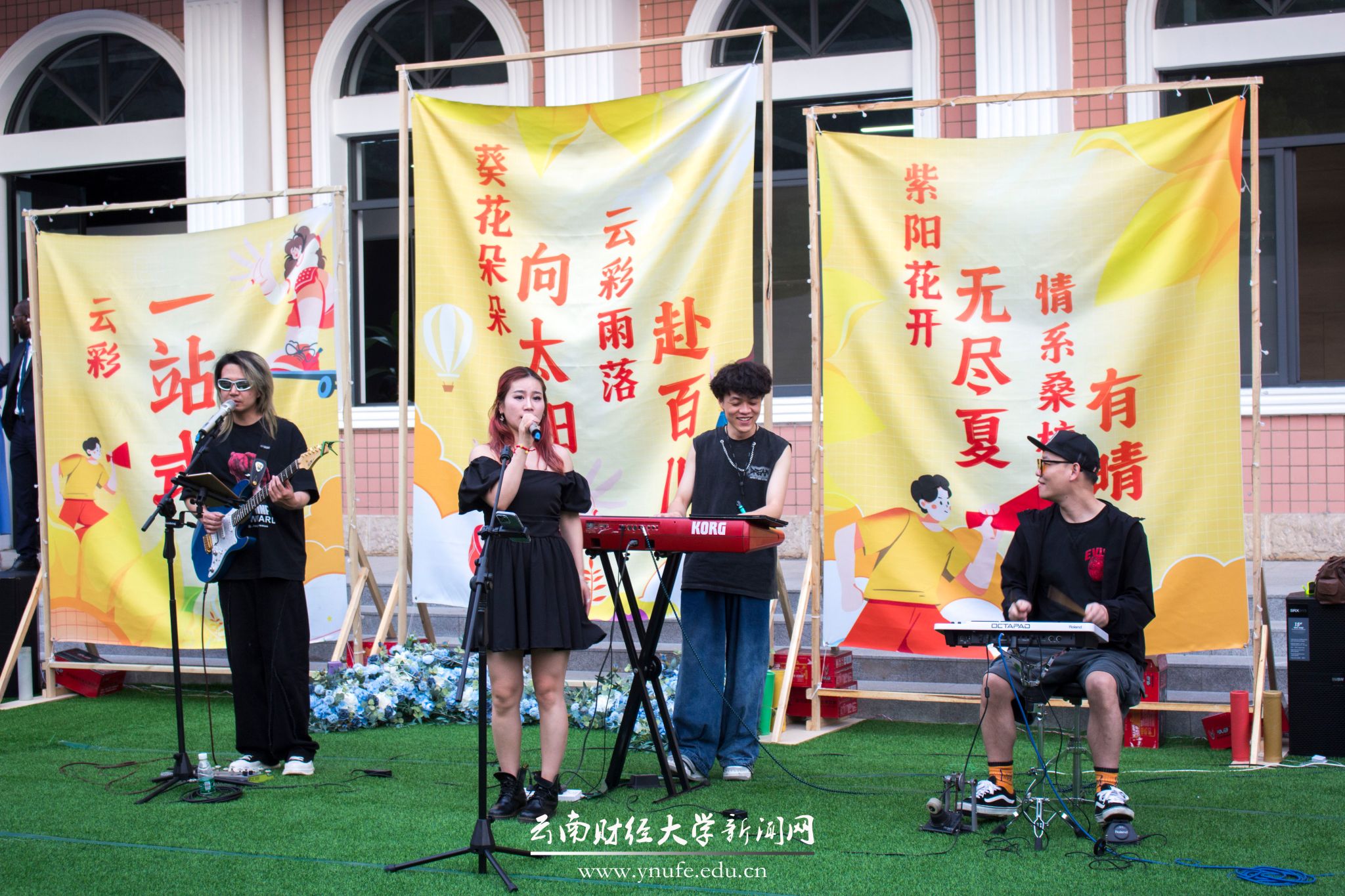 在“云彩街(Gai)子天Live”活动现场,伴随着大胆乐队的现场演唱,国际学生为大家带来了博茨瓦纳、叙利亚、巴基斯坦、利比里亚、莱索托、埃塞俄比亚、津巴布韦、孟加拉国、尼泊尔、越南、泰国、柬埔寨、老挝等国的服装秀,礼乐社同学为大家带来了汉服秀。中外学生同在“云彩街(Gai)子天”舞台上展示,唱歌、跳舞,共同书写独属于“小云彩”的快乐,加强了彼此之间的学习交流,增进了友谊。