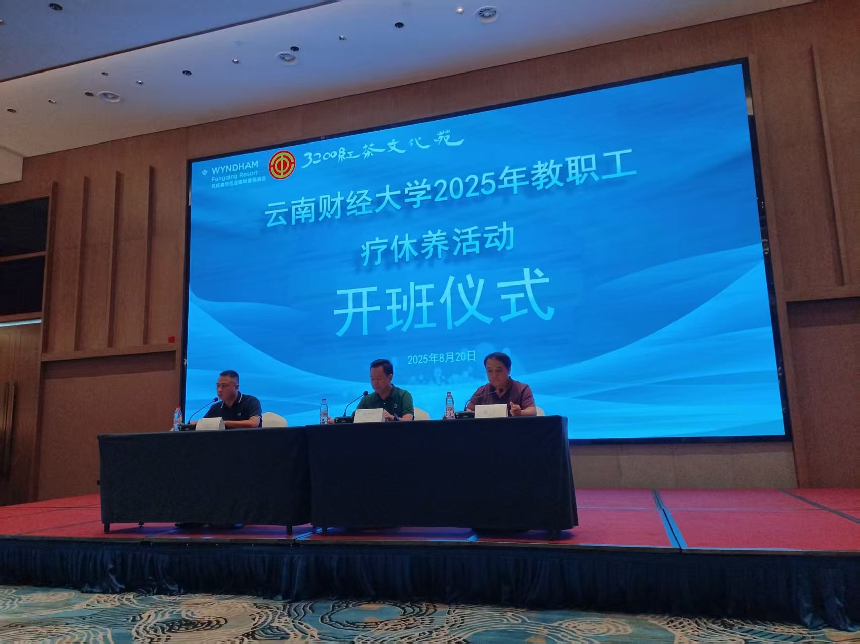 为关心关爱教职工身心健康,舒缓工作压力,增强团队凝聚力,8月20日至25日,学校2025年第三期教职工疗休养活动在凤庆森华信温德姆度假酒店举行。校党委书记陈红,校党委委员、副校长余怒涛,校党委委员、副校长颜明到现场看望参加疗休养的教职工,并参与了集体活动。校党委副书记施仲军书记带队,学校60余名一线教职工参加疗休养。