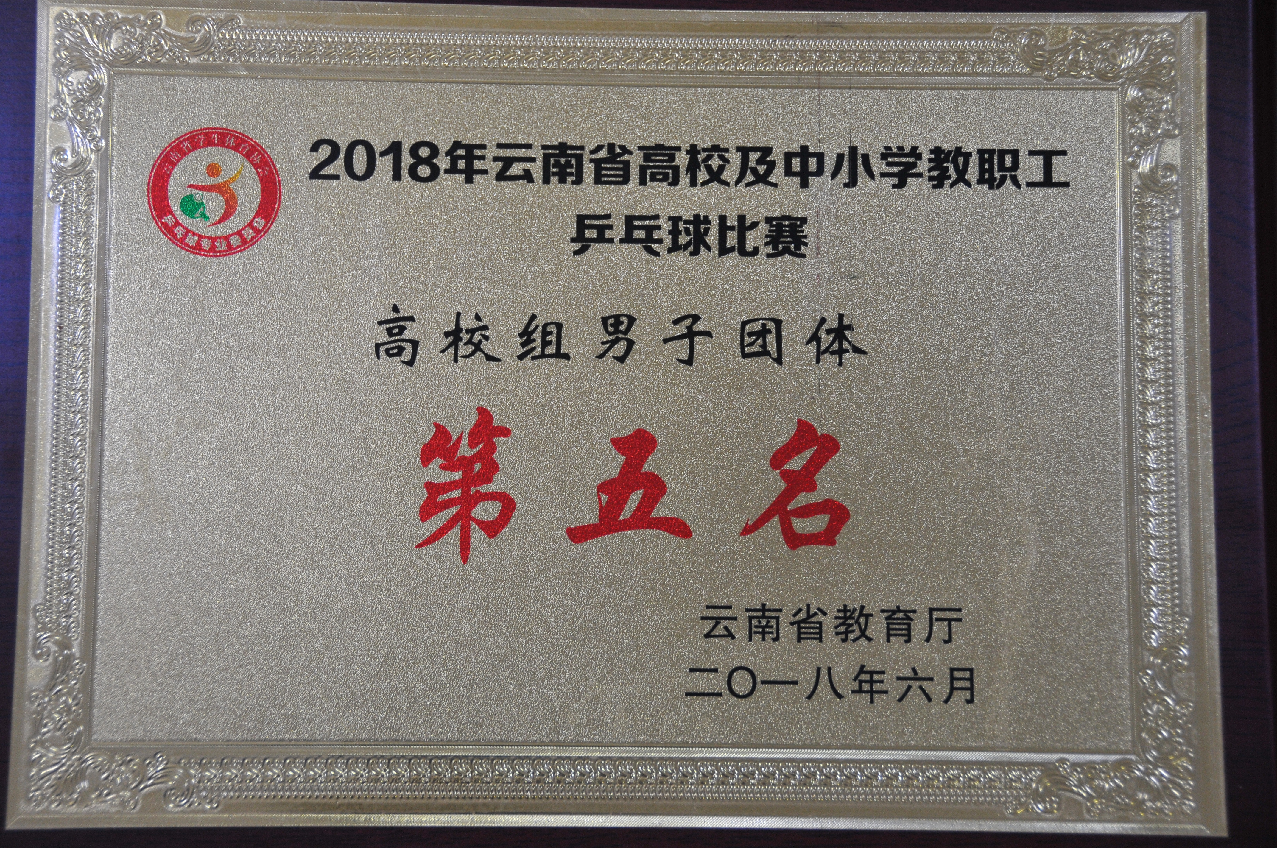 42018年云南省高校及中小学教职工乒乓球比赛  高校组男子团体  第五名   云南省教育厅  20186