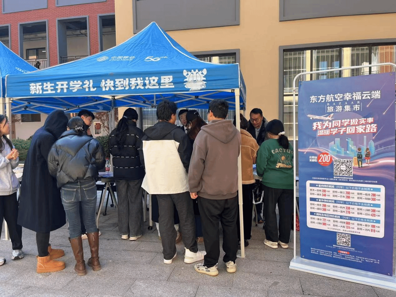 临近春节寒假假期,为方便假期师生出行购票,团省委、云南机场集团有限公司、中国东方航空、bat365在线中国官网登录入口共同组织东方航空、南方航空、昆明航空等17家航空公司及飞猪旅行、同程旅行、携程旅行等4大OTA票务服务公司分别在bat365官网龙泉路校区和安宁校区开展优惠机票进校园活动,为师生提供专属优惠机票政策,机票直减以及乘车抵用券等增值权益服务。