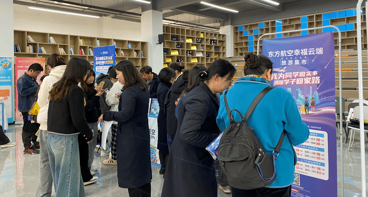 活动现场工作人员热情地为前来咨询的师生提供了详尽的订票指南,介绍各类优惠机票政策,包括针对学生的专属折扣、特定航线的优惠价格以及灵活的退改签规定等。工作人员为到场师生详细介绍了优惠机票产品,并就机票预订、航班动态提醒、在线值机、服务预约、行李查询等功能进行演示和解答。同时,还详细讲解了如何通过航空公司官方 APP 和其他正规渠道预订机票,以确保同学们能够享受到最优惠、最便捷的购票体验。