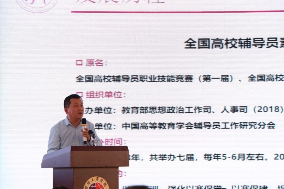 赵德虎以“高校辅导员素质能力大赛促进辅导员核心素养提升”为切入点,从大赛历史、项目分析、经验方法等方面强调了辅导员参加素质能力大赛的重要性,同时结合参赛与个人工作实践分享如何将比赛中所获得的知识应用到实际工作,借助比赛认识同行、平台和资源,更好地做好辅导员工作。他认为,辅导员工作要以学生为中心,思学生所想、做学生所需,围绕立德树人展开,同时也要注重思想政治教育理论水平、科研能力的提升。