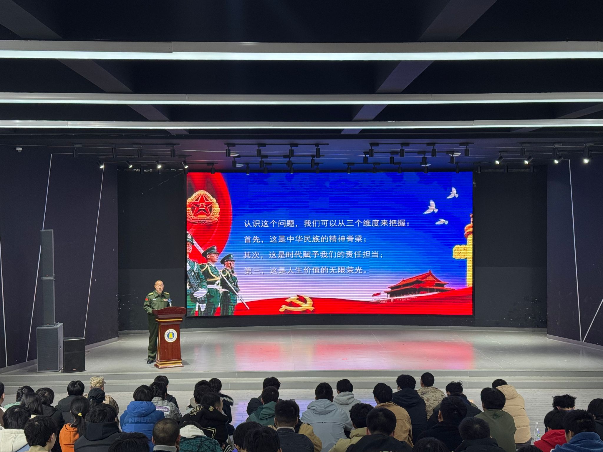 五华区人武部政委赵永斌上校从报名流程、体检标准等基础环节以及大家最为关心的优待福利等核心内容,为现场师生全面细致地解读了2026年征兵工作的具体政策,内容详实、重点突出,有效为同学们厘清了参军入伍的思路,打消了顾虑,让大家对征兵政策有了系统的认识。
