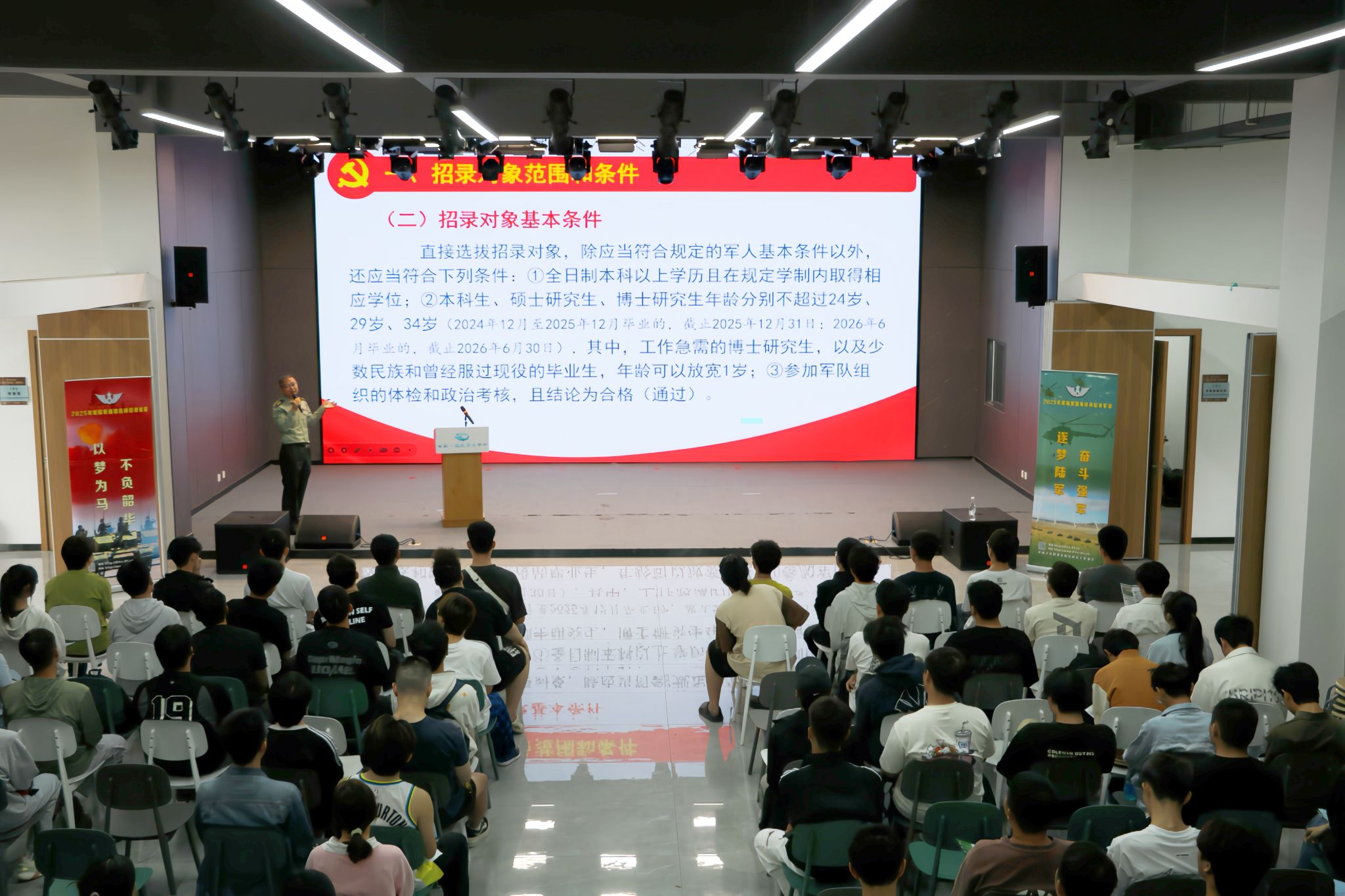 9月17日,新疆军区陆军直接选拔招录军官宣讲会在云彩“一站式”学生中心举行,新疆军区某部政委裴建明到校宣讲,学校武装部部长沙磊主持宣讲会。