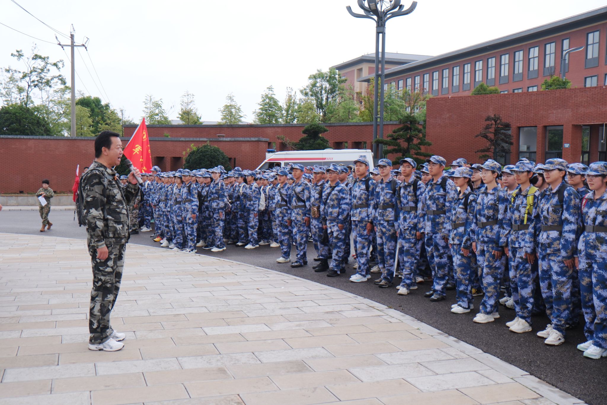 学校党委副书记施仲军,宣传部、学生处(学生工作部、武装部)、保卫处(保卫工作部)相关负责人和教职工,各学院党政领导、辅导员、带队教师,2025级学生军训团部分教官、参训学生,共6800余人参加活动。