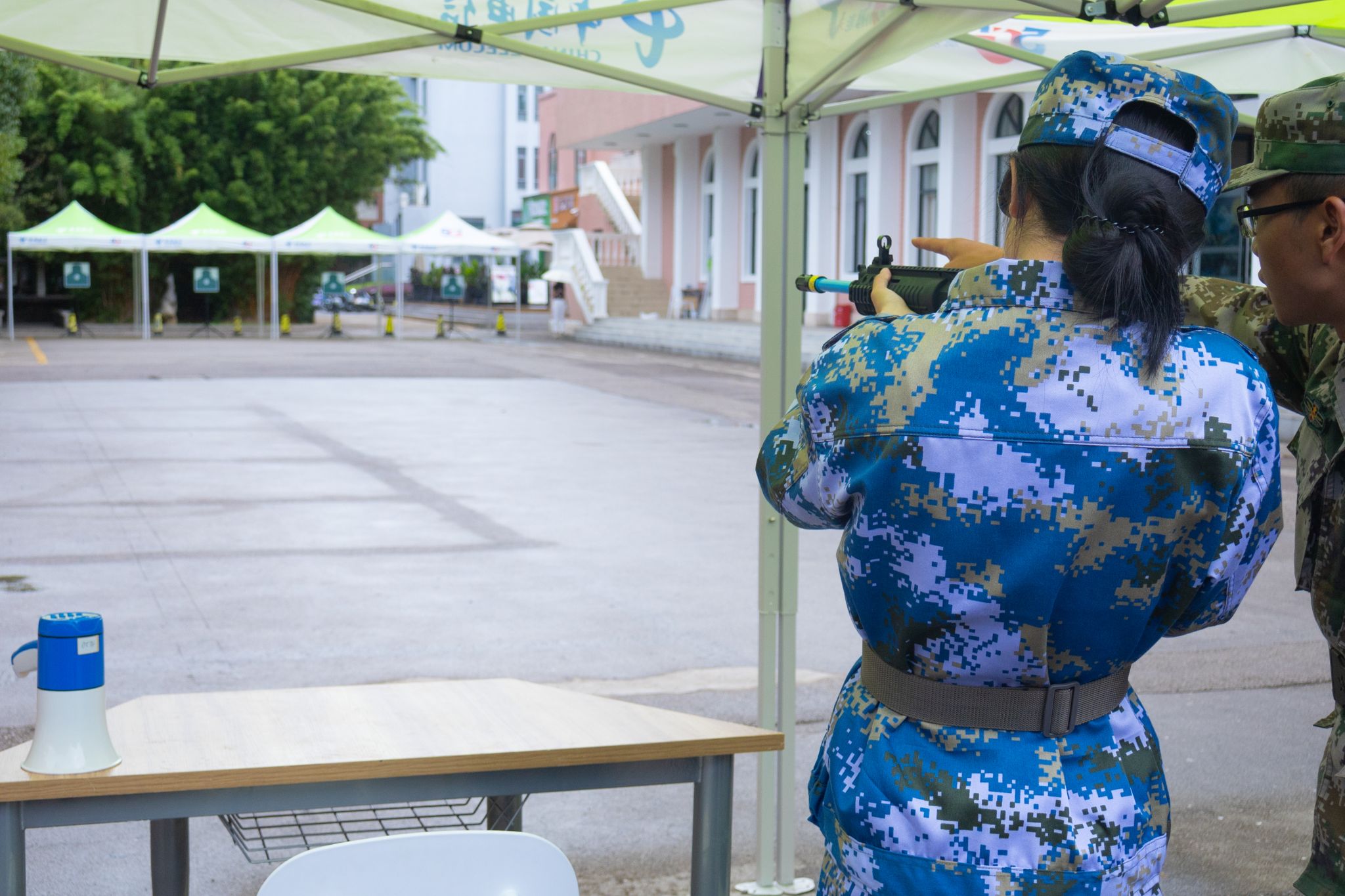 为丰富军训内容,增强学生爱国意识与国防观念,体验军事技能,武装部于9月10日至12日分别在龙泉路校区南院秋实楼旁、北院田径场,安宁校区悦华苑地下停车库组织2400余名2025级军训学生代表体验模拟射击科目。