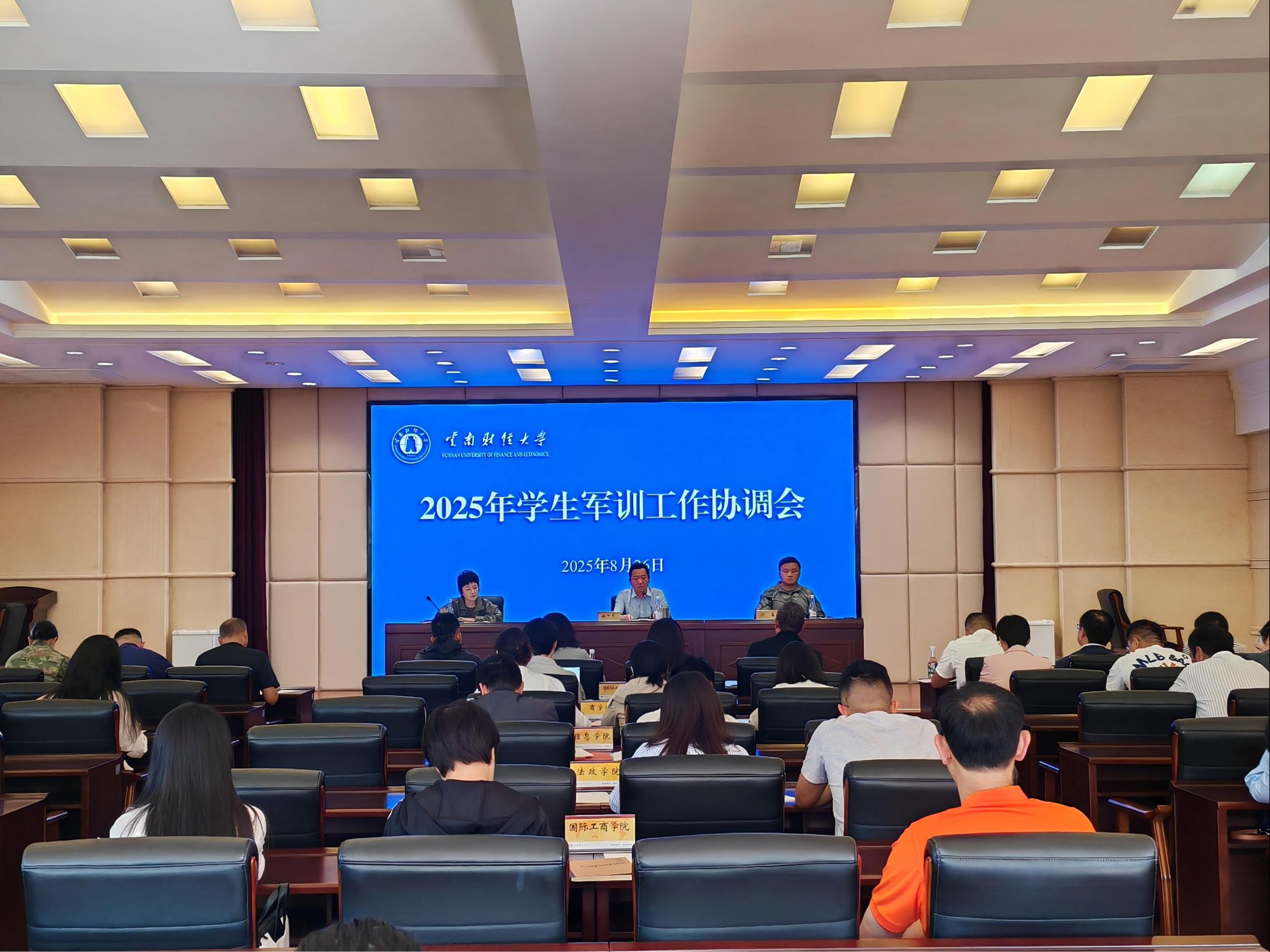 8月26日上午,学校2025年学生军训工作协调会在致远楼415会议室召开。校党委副书记施仲军出席会议并讲话,学校办公室、宣传部、学生处、教务处、保卫处、体育部、后勤产业集团、安宁校区管理办公室等部门负责人及各学院党委副书记和军训连队指导教师参加会议,会议由学生处(学生工作部、武装部)处(部)长沙磊主持。