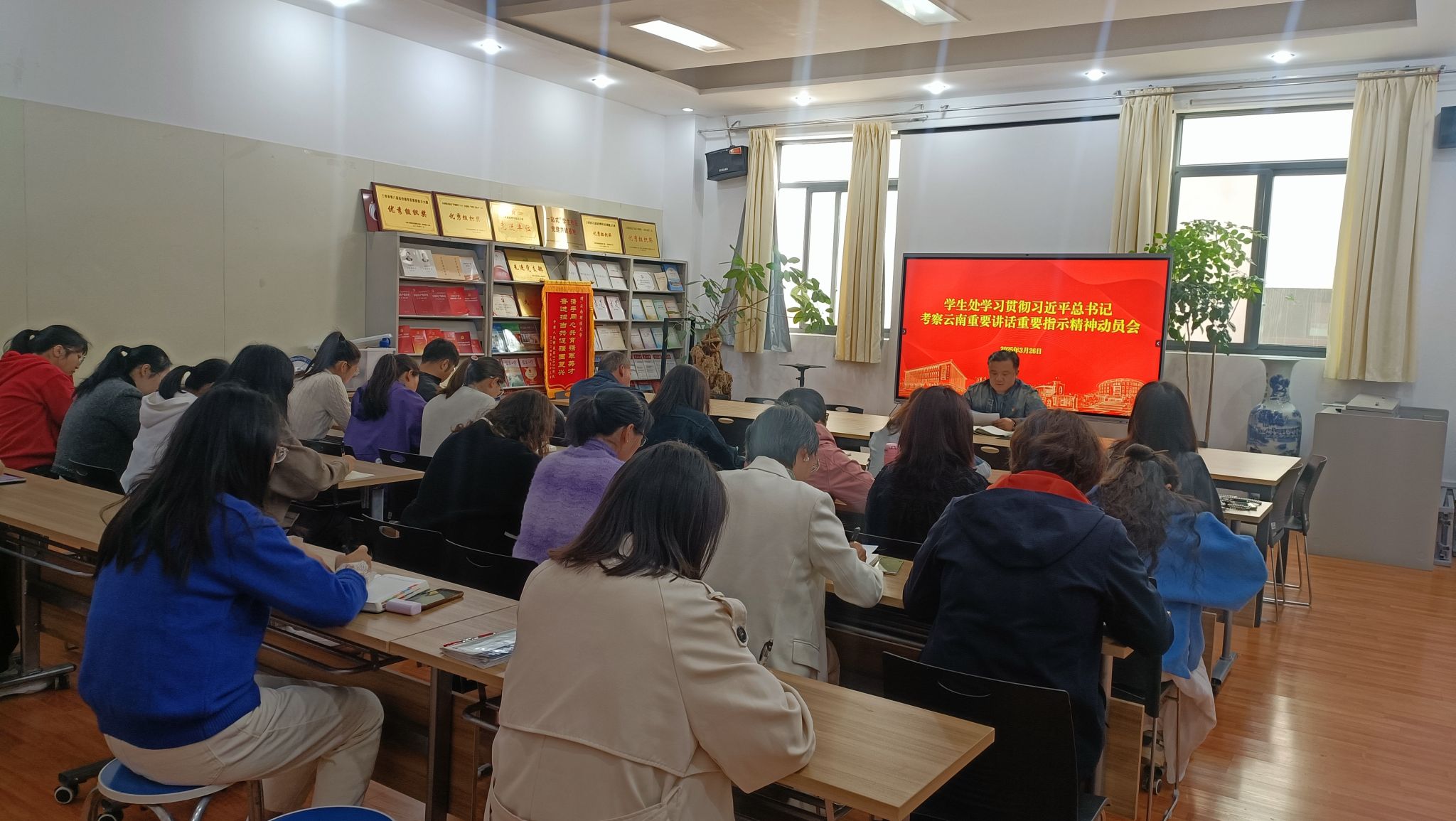 3月26日,学生处召开全体教职工会议,传达学习习近平总书记考察云南重要讲话重要指示精神。会议由学生处处长沙磊主持。