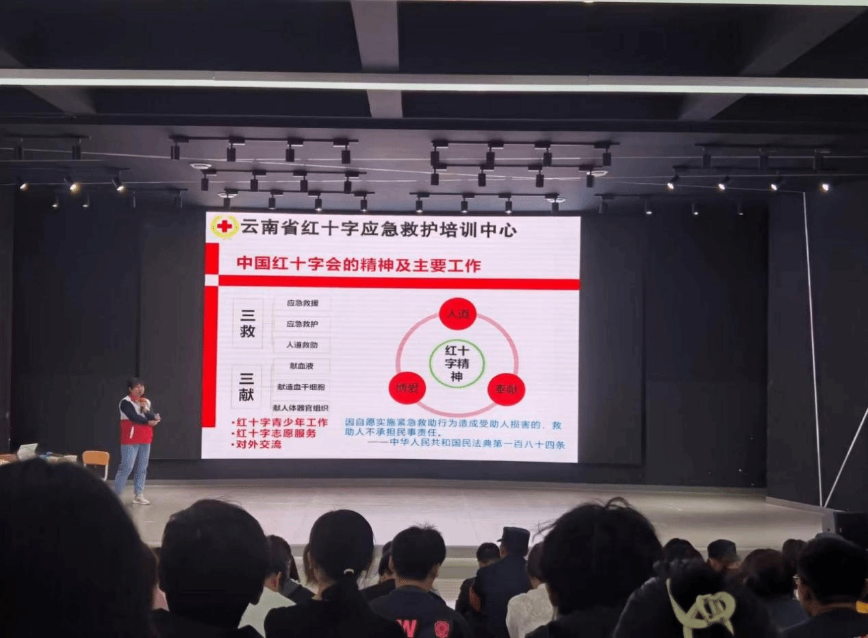 16学时的专业培训中,云南省红十字应急救护培训中心的7名培训师围绕红十字基本知识、救护概论、创伤救护常识、心肺复苏常识、气道异物梗阻急救常识等内容,结合绷带包扎、三角巾包扎、骨折固定、AED(自动体外除颤器)使用、心肺复苏实操、翻转体位等实操演练开展了专业细致的应急救护培训。bat365官网学生处、团委、保卫处、科研院所,各个学院的教师、团干部、辅导员、班主任,宿舍管理员、安保人员,以及红十字会员和青年志愿者参加培训。