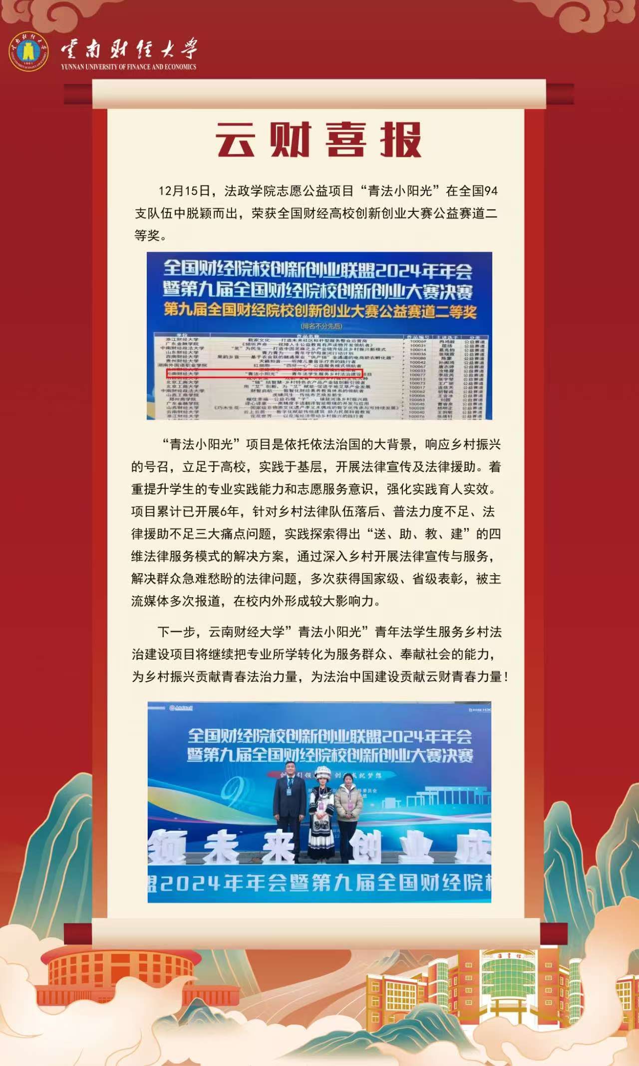 bat365官网法政学院“青法小阳光”项目荣获全国财经高校创新创业大赛公益赛道二等奖