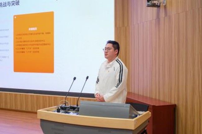 作为从云财走出的优秀学子,骆盈磊以“初心、磨砺、突破”为主线,回溯在校成长轨迹。他结合在校期间积极开展学习科研、担任学生骨干、参与实践创新和“第二课堂”的成长经历。分享了优秀“校风、教风、学风”对个人成长的重要影响,他说“在课堂内外养成的严谨态度与实践能力,构成了自己职业发展的核心竞争力。云财通过思想引领、实践育人等多元路径,帮助自己实现了从知识积累到价值塑造的蜕变。”并鼓励同学们要主动弘扬云财“求实创新”的校风,积极践行“立志明德 博学躬行”的优良学风,在“校风、教风、学风”的滋养下培养自己扎实的学识和素养,以实际行动诠释云财青年担当与使命。