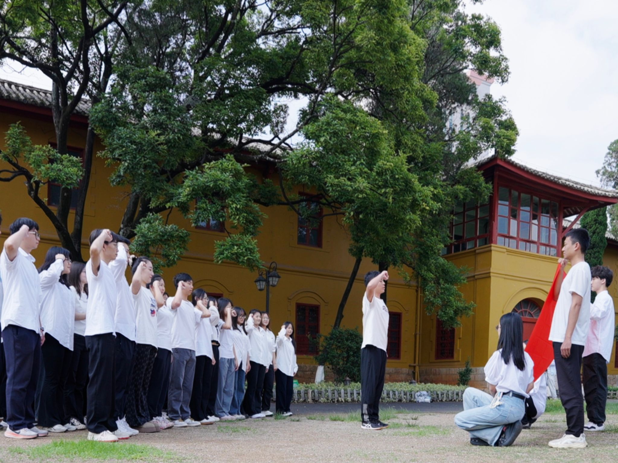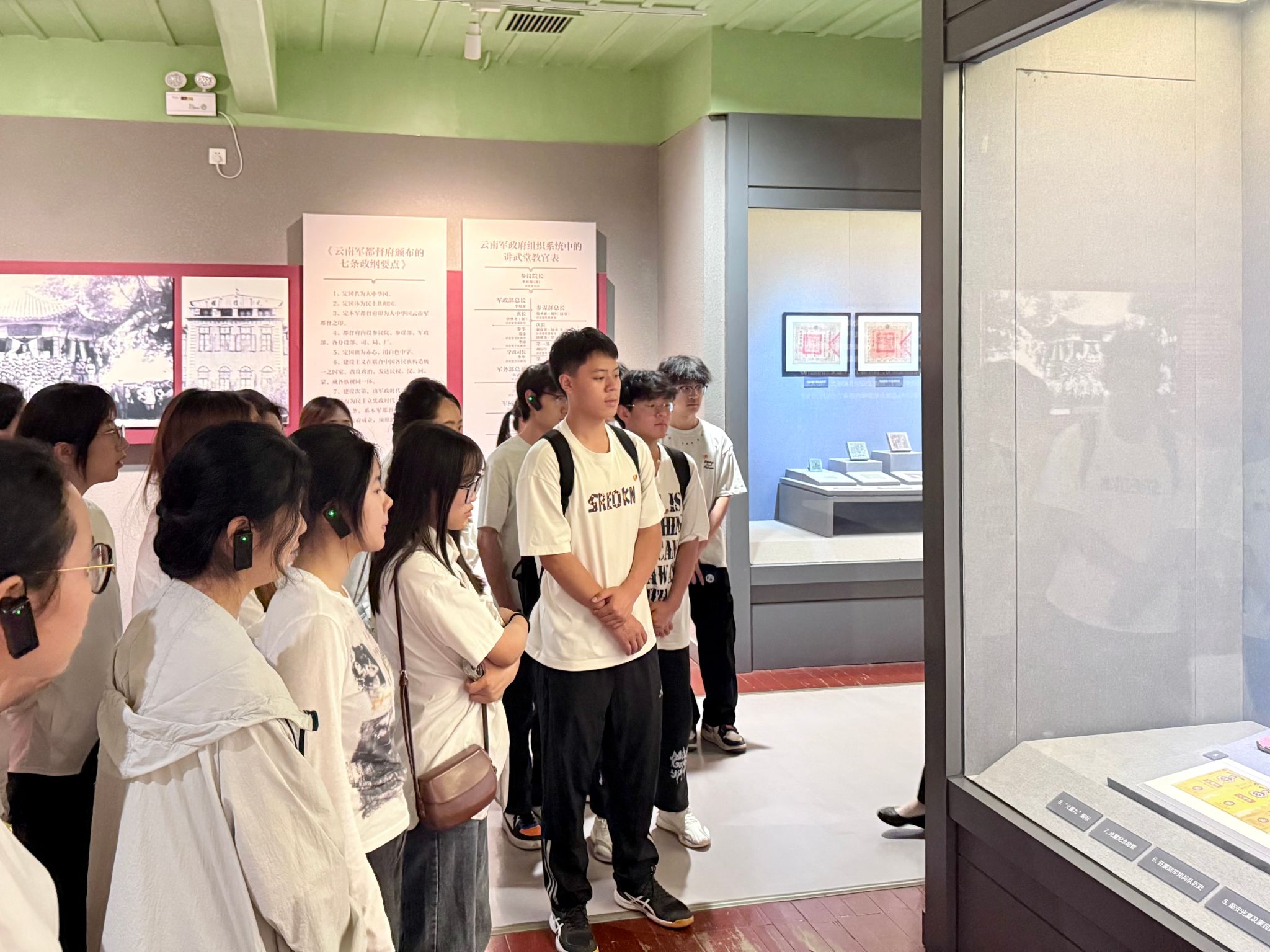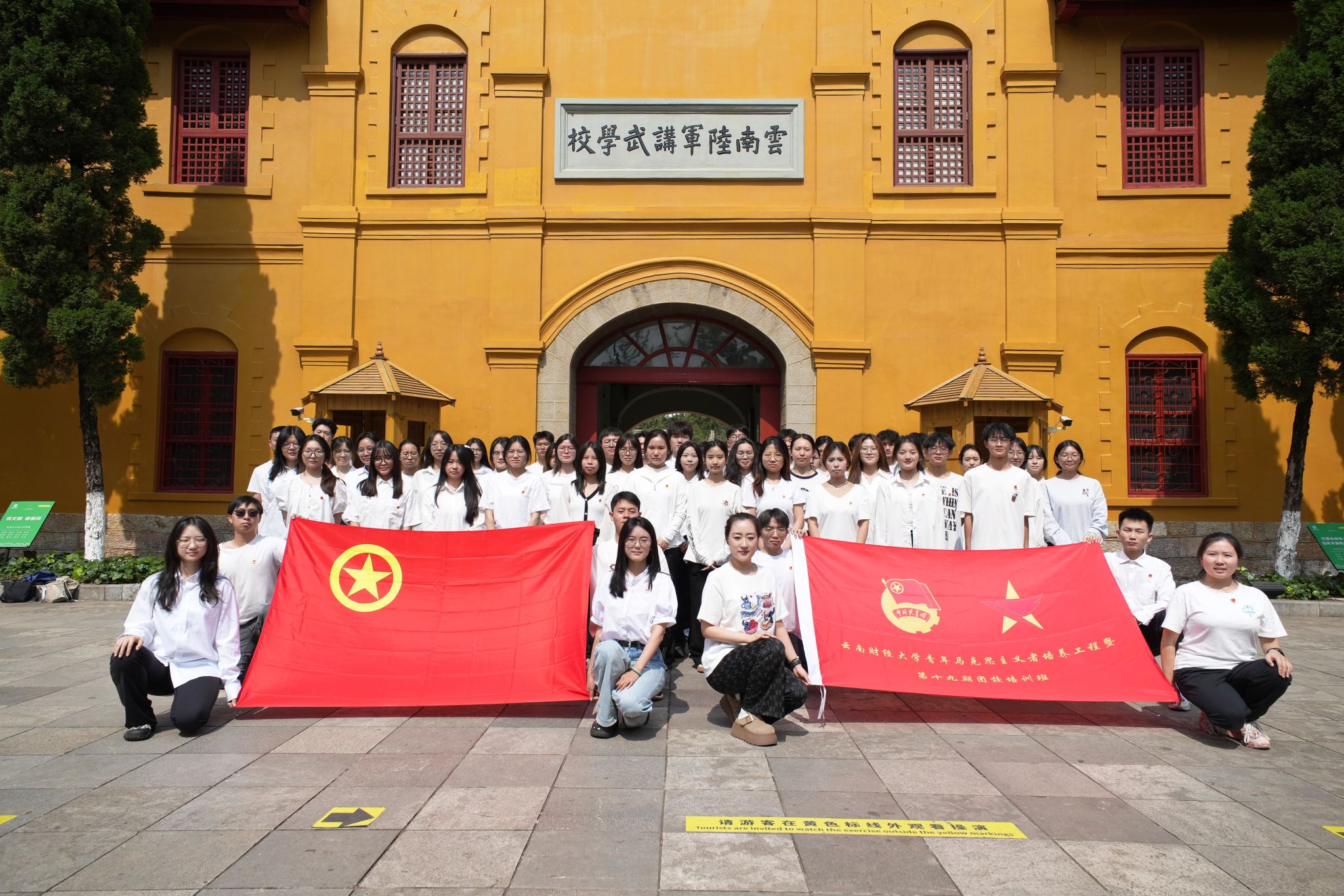活动中,学员们先后走进云南陆军讲武堂历史博物馆、云南解放纪念馆和云南起义纪念馆。在讲解员的引导下,大家通过珍贵的历史文物、影像资料和场景复原,系统了解了云南近代革命历程。参观结束后,青马班学员杨成龙感慨道:“这些展柜里的旧军装、发黄的信笺,让我真切触摸到了历史的温度。作为新时代青年,我们更应珍惜学习机会,将红色精神转化为求知动力。”活动尾声,全体学员在讲武堂操场列队,面向团旗庄严宣誓。铿锵的入团誓词回荡在百年历史建筑间,彰显着云财学子传承红色基因、勇担时代使命的坚定决心。