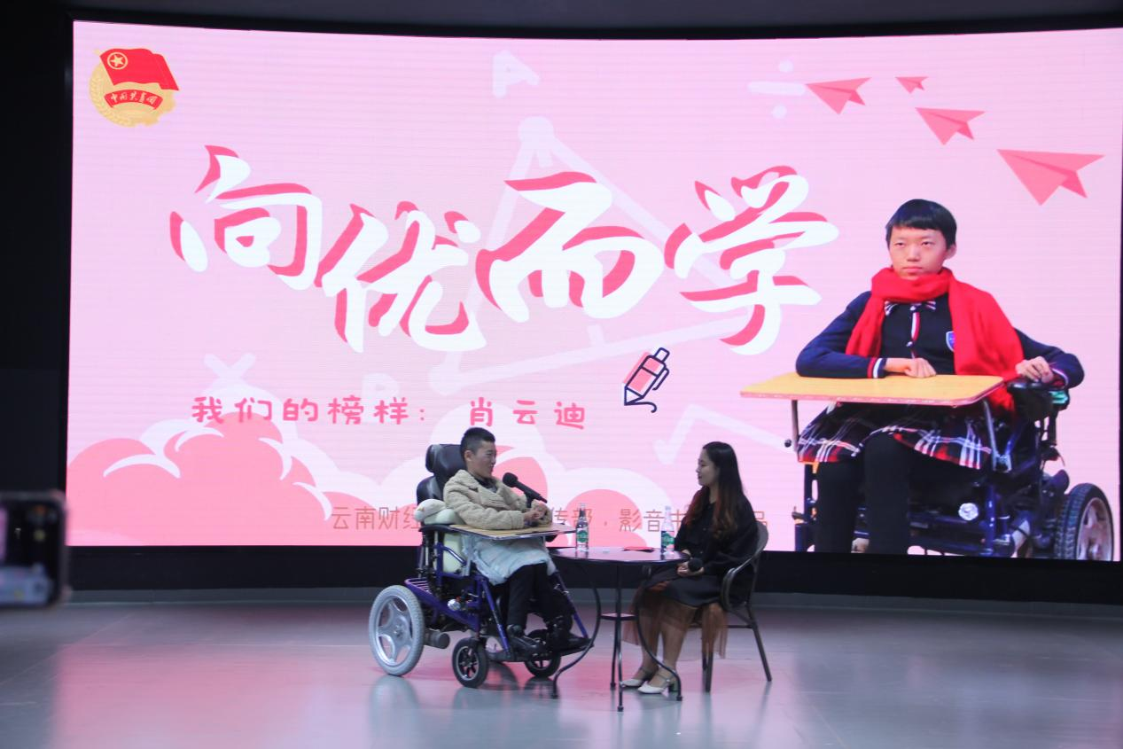 “原来轮椅上的人生也能如此精彩。”肖云迪乐观积极的人生态度给在场的师生带来了启迪与鼓舞,一次又一次热烈的掌声给予了这个坚强的女生最大的敬意与最温暖的鼓励。