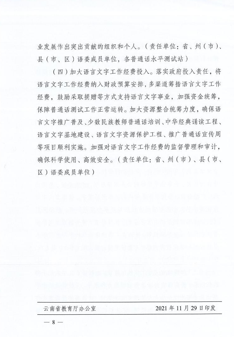 云南省语言文字工作委员会关于印发云南省“十四五”时期加大国家通用语言文字推广力度工作方案的通知