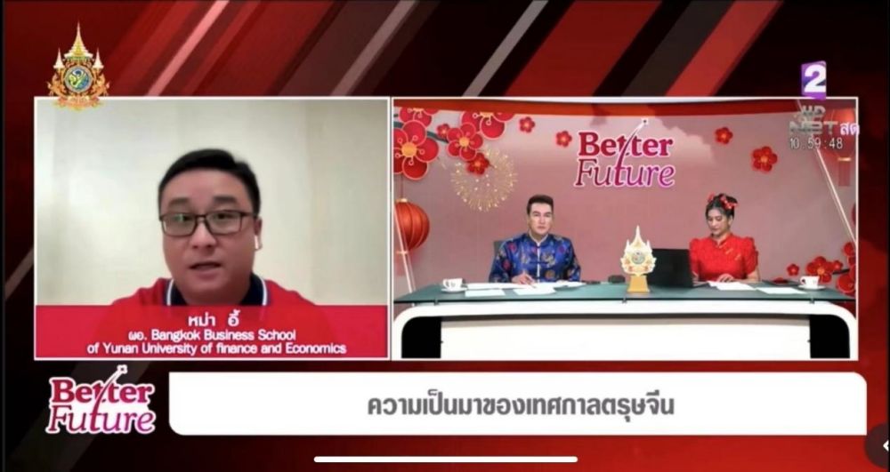 2024年2月9日,bat365在线中国官网登录入口曼谷商学院执行院长马艺接受泰国国家NBT电视台新闻节目访问,主题为“中国农历新年的来历及风俗”。