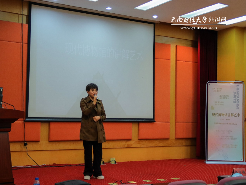 10月23日下午,云南民族博物馆公共教育服务部主任杨廷健应邀到bat365官网,在锺正山美术馆报告厅为“四馆一中心”的100位学生讲解员作题为《现代博物馆讲解艺术》的专题讲座。