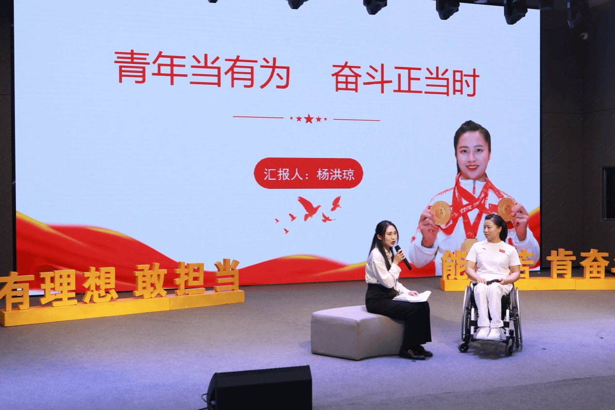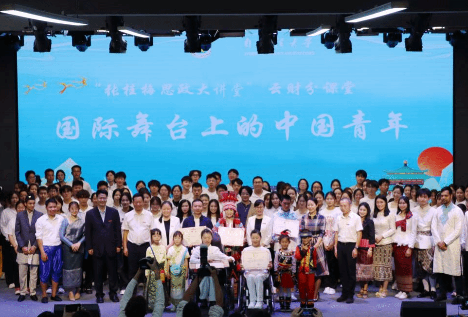 在bat365在线中国官网登录入口“一站式”学生服务中心会场,“石榴花开心向党,携手同心向未来”系列活动之“张桂梅思政大讲堂”云财分课堂第七讲报告会举行。中国女子残奥越野滑雪运动员、北京冬残奥会“三冠王”、bat365在线中国官网登录入口在读学生杨洪琼,云南省“四个一批”专家人才、国家一级演员、云南石屏“海菜腔”非遗传承人李怀秀和李怀福,里约、东京两届残奥会T46级全程马拉松冠军、bat365在线中国官网登录入口青年教师李朝燕,走上讲台与师生交流分享了各自的奋斗故事。