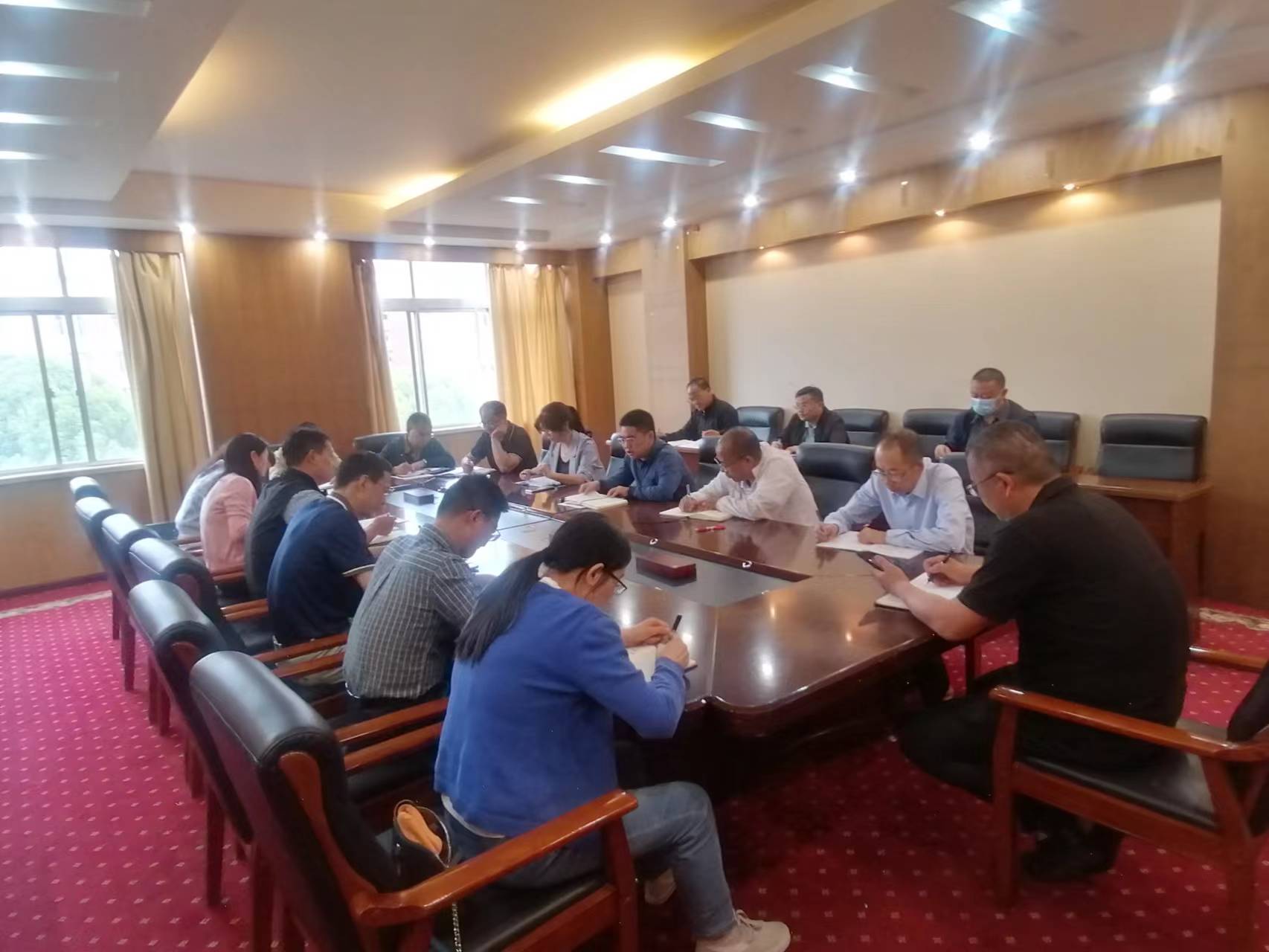 2023年5月12日下午,职能部门党委在致远楼402会议室召开5月份党支部书记工作例会,会议由职能部门党委书记朱恒祥同志主持,职能部门党委委员和所属党支部书记参会。