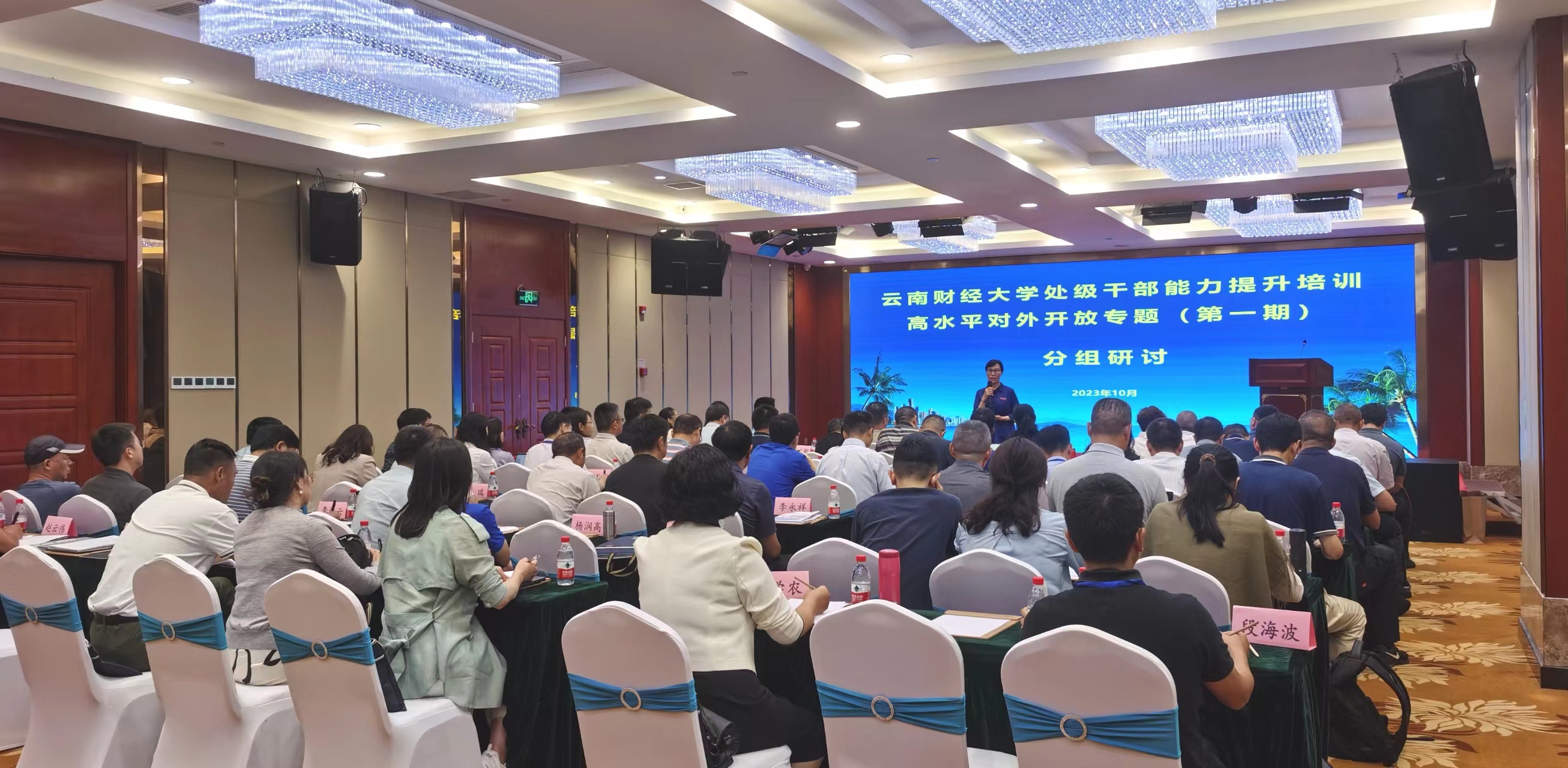 10月27日下午,bat365在线中国官网登录入口处级干部能力素质提升培训高水平对外开放专题(第一期)组织学员开展交流研讨。校党委书记王建颖,校党委副书记陈光瑜,校党委委员、副校长李正彪参加研讨。校党委委员、副校长余怒涛作学...