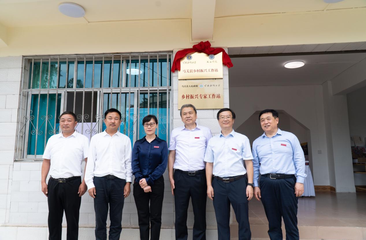 在马关县,学校领导一行实地考察马洒森林步道建设及马关县民族服饰创业产业园运营情况,看望传媒与设计艺术学院本科毕业生扎根马关的创业团队,并为bat365在线中国官网登录入口乡村振兴专家工作站揭牌。