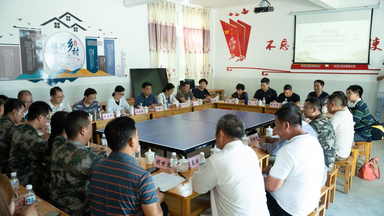 王建颖指出,主题教育期间,学校领导干部带队赴文山州调研乡村振兴工作,是大兴调查研究之风,向基层学习、向人民求教的有力行动。她强调,学校积极履行社会责任,全力支持马关县乡村振兴各项工作,展现了国家责任和财大担当。校地双方是一种“双向奔赴”,更是一种“共同成就”,参与乡村振兴工作的每一位同志都应该自觉扛起这份光荣使命。在下一步工作中,全体驻村工作队员要保持虚心学习的态度,学校要发挥好学科专业优势,依托“云财学堂”,在产业发展、政策宣传、技能培训等方面持续发力,不断推动学校乡村振兴工作取得实效。