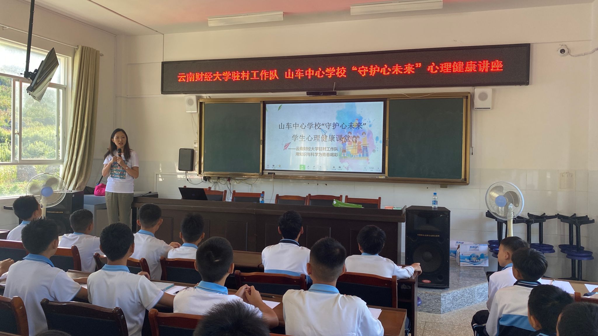 9月3日-4日,为进一步帮助坡脚镇当地青少年儿童提高自我认识能力,增强自我情绪调节能力,提升心理健康素养,学校驻村工作队特邀请清华大学积极心理学指导师车思静为山车中心学校全体学生开展主题为“守护心未来”的心理健康辅导及青少年性健康知识讲座。