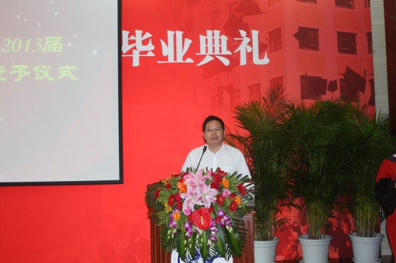 2013届优秀毕业生方世川代表博士毕业生发言,向曾给予他们无限关怀和帮助的学院领导、老师、亲友们表达了最诚挚的感谢,并表示在未来将心系母校,以杰出的工作业绩为母校增光添彩。
