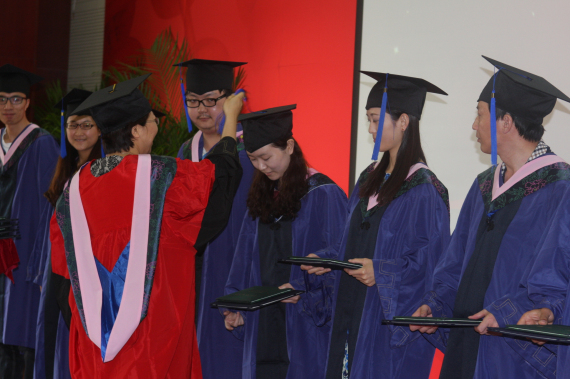2012级博士生方来武同学代表在校生发表感言,向2013届全体毕业生送出最诚挚的祝福,表达了在校生将继续传承学兄学姐们的优良学风传统的愿望,即坚持梦想,勇担责任;心系学院,心怀感恩;以勤为径,以苦作舟,最后祝愿毕业生在未来的日子里大展宏图,祝愿学院硕果累累,再书华章。    学院副院长冯秀军教授为硕士学位获得者拨转流苏、颁发毕业证和学位证书。