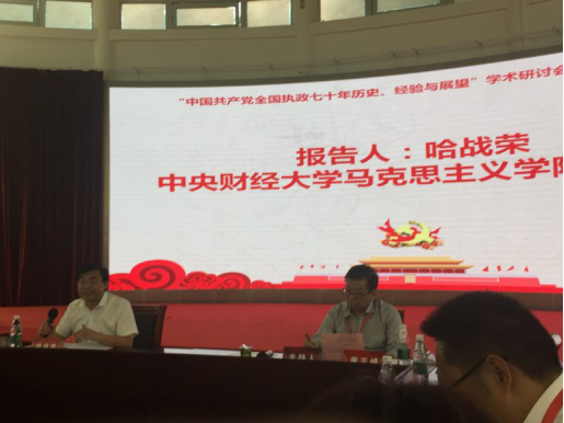 会上,今年会教师哈战荣作了题为《新中国成立70年经济社会发展的巨大成就与国际影响研究》的主题发言。发言以国际社会各界对中国70年来经济社会发展取得成就的有关谈话、采访、报道、评论、撰文、立说和感想等为素材,从发展成就、重大贡献、积极作用、示范效应、成功缘由和发展前景等方面,以“局外人”的视角,比较深入分析了国际社会对新中国70年发展及其成就的看法和态度、原因和动力、前景和影响,旨在我们自己清楚我国的发展及成就在世界各国人民心目中的地位和作用,以及他们对我国的巨大发展成就持有的态度和立场,对我国在安排、考虑自己经济社会发展时如何积极营造良好的国际氛围、创设友好的外部环境、争取有利的外部发展条件有很好的启发作用。哈战荣老师的发言由于视角独特,资料翔实,说理性强,得到了与会专家、学者的好评。